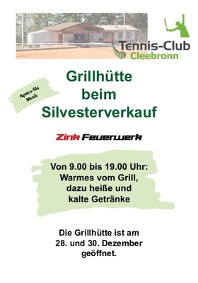 Die Grillhütte ist am 28. und 30. Dezember jeweils von 9 bis 19 Uhr geöffnet.