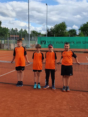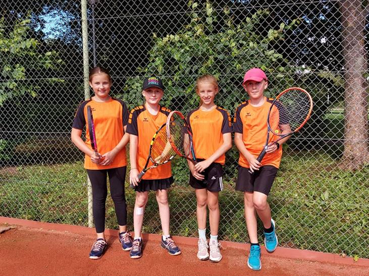 Die Jüngsten in den beiden U10-Mannschaften spielten am Sonntag gegeneinander. Leider waren einige Kinder krank und konnten nicht spielen. So mussten am Ende ein 3 gegen 3 Spiel stattfinden. Für die U10-1 spielten Damionas Koupidis, Julian Peck und Zoé-Lia Eichbauer und für die U10-2 spielten Rafael Rößler, Matteo Dziewior und Jonah Schröder. Es entwickelten sich spannende Spiele und es war alles andere als eine klare Angelegenheit für die Kids aus der ersten Mannschaft. Für eine Überraschung sorgte Matteo mit einem Sieg gegen Julian und auch im Doppel sorgten Rafael mit Matteo gegen Damianos und Julian für eine kleine Sensation und gewannen 5:4, 1:4 und 10:8. Damit ging das Tennis 2:2 aus. Allerdings waren die U10-1 Kids Sieger in allen 4 Staffeln. Daher gewann die U10-1 mit 12:4 Punkten gegen die U10-2.